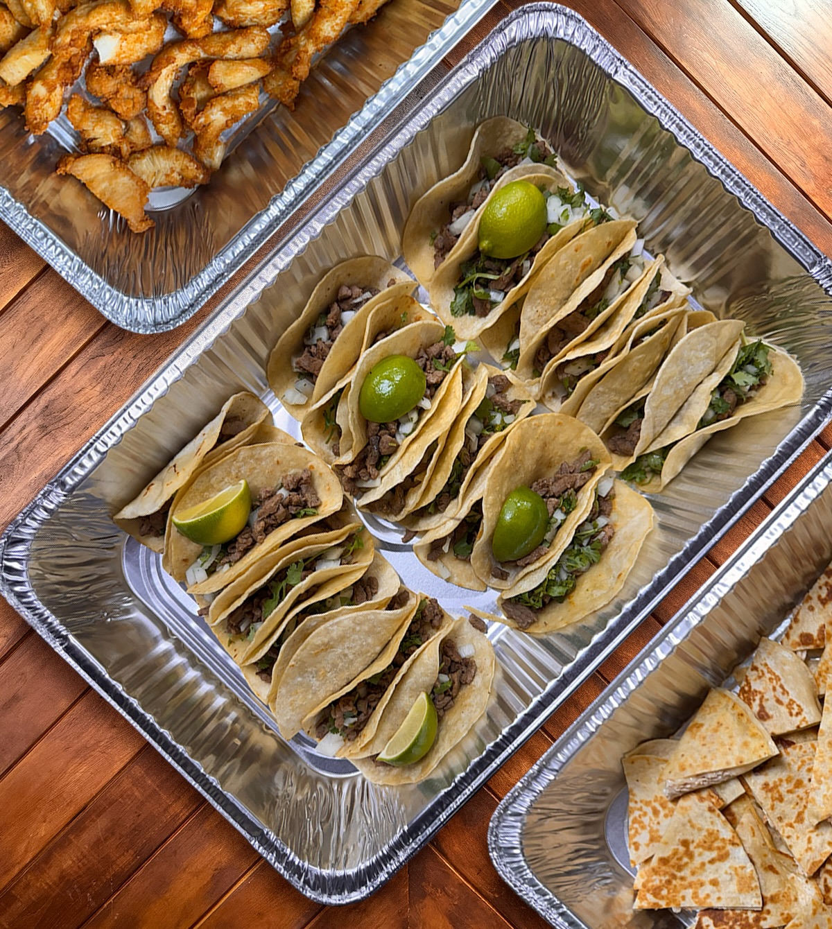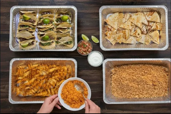 Fajitas, tacos, quesadillas, rice, beans, and all the extras, packed fresh and ready for pickup.